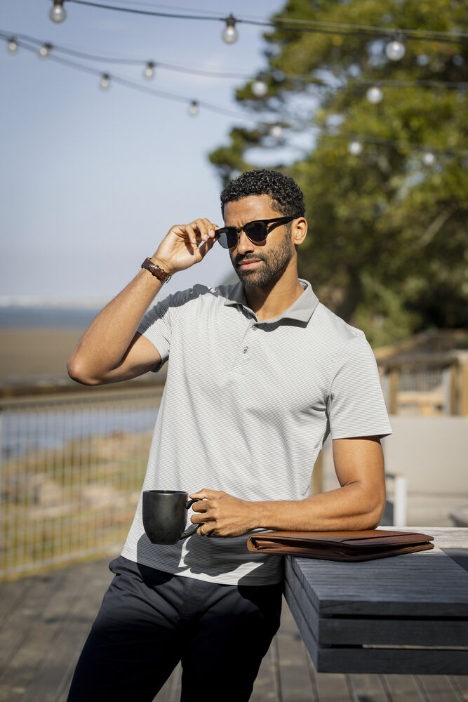 De Virtue Polo Stripes biedt veelzijdigheid. Ideaal voor golf, werk, reizen en vrije tijd. Gemaakt van een lichtgewicht mix van DryTec™ gerecycled polyester en elastaan, biedt het uitzonderlijke stretch en een verfrissend gevoel. De vochtafvoerende stof houdt u droog, terwijl de UPF-zonbescherming zorgt voor comfort en veiligheid.