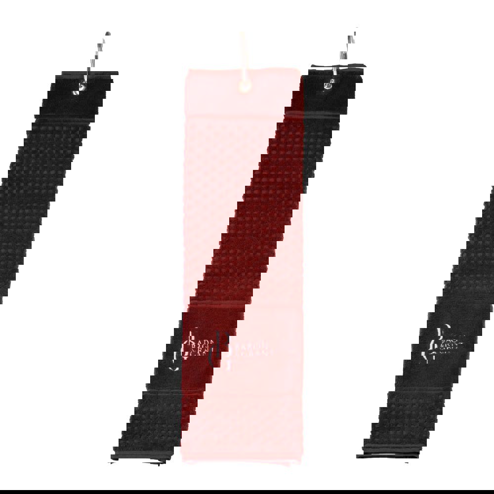 650 grams katoenen golfhanddoek in drieën gevouwen met karabijnhaak, formaat 13 x 50 cm